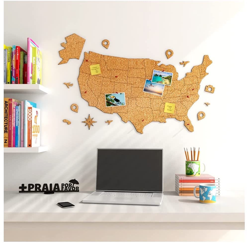 8. Mural de Cortiça Adesivo Mapa dos Estados Unidos + 10 Pins Especiais: https://amzn.to/3oXKBSp