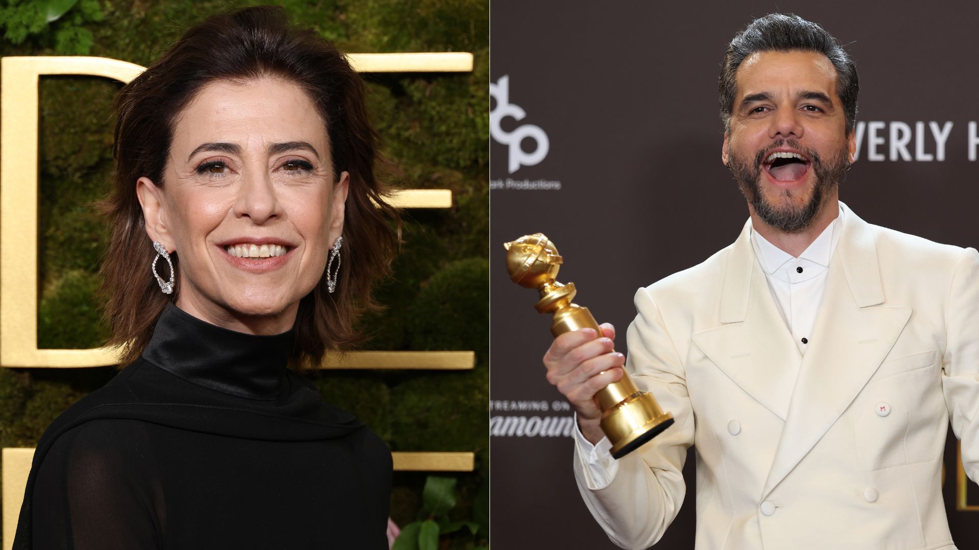Fernanda Torres sobre vitórias de 'O Agente Secreto' no Globo de Ouro 2026: 'Coisa mais linda do mundo' (Fotos: Kevin Mazur/Getty Images - Allen J. Schaben/Los Angeles Times via Getty Images)