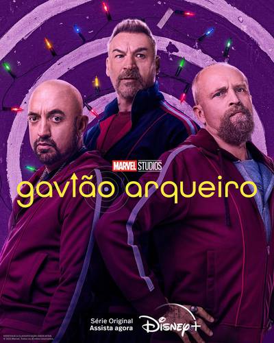 O Disney+ divulgou um novo pôster de Gavião Arqueiro com destaque para o trio de vilões composto por Ivan, interpretado pelo ator Aleks Paunovic, Tomas, por Piotr Adamczyk, e Enrique, por Carlos Navarro.