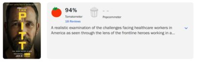 Com estreia marcada para a próxima quinta-feira, dia 8 de janeiro, a segunda temporada de The Pitt, uma das séries mais aclamadas do último ano, recebeu 94% de aprovação da crítica especializada, segundo o Rotten Tomatoes. A nota é baseada em 18 críticas agregadas ao site até o momento. Confira: