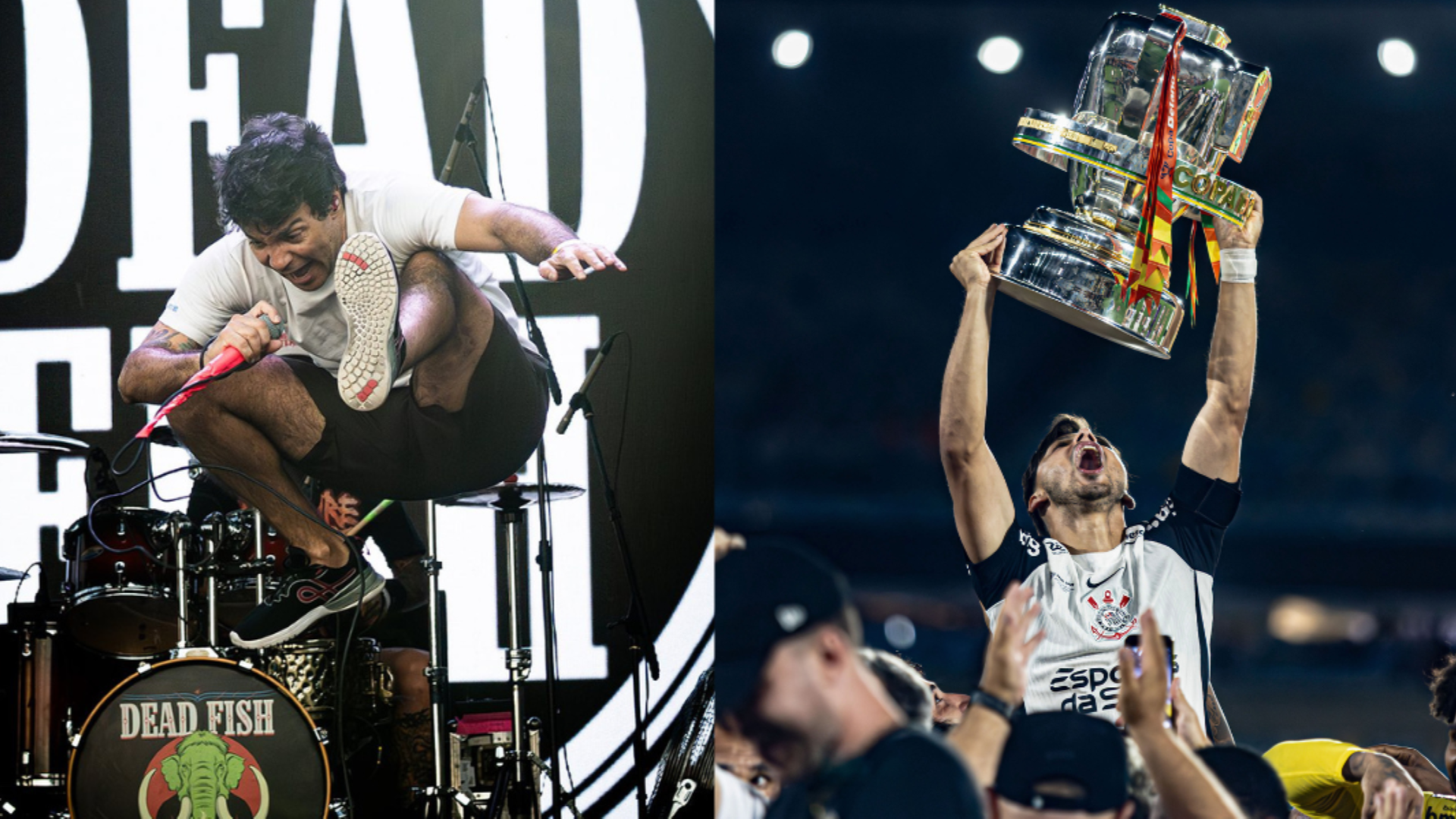 À esquerda, banda Dead Fish e à direita, Corinthians (Fotos: Ellen Artie @ellenartie e Danilo Fernandes/Sports Press Photo/Getty Images)