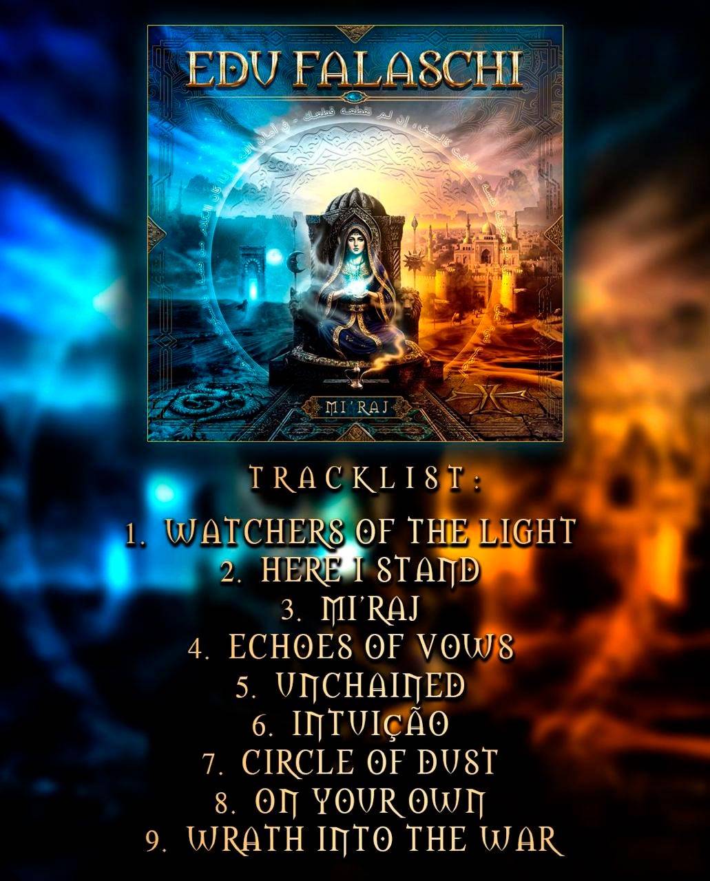 Edu: Ainda não posso revelar detalhes, mas já temos datas marcadas para a turnê. Desta vez, farei menos shows, para poder fazer shows mais especiais, com mais produção e lugares maiores. Além dessa celebração, também será uma turnê do novo álbum. É um show mais longo, de aproximadamente duas horas e meia, com três atos. O primeiro ato será focado na trilogia, com várias músicas de Vera Cruz, Eldorado e MI’RAJ. O segundo traz músicas da minha história, com músicas do Mitrium, Venus, Almah e Angra — nessa parte, dos discos Rebirth, Hunters and Prey (2002) e Temple of Shadows (2004). O terceiro foca em Aurora Consurgens (2006) e Aqua (2010), do Angra. Muitas fãs pedem músicas desses dois álbuns, pois foram pouco tocados até em suas épocas. Já celebrei muito o Rebirth e o Temple of Shadows, também fiz turnês de Vera Cruz e Eldorado. Então, é um show diferente.