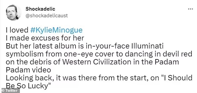 Parte da teoria seria ligada a capa do 16º álbum de Kylie, o recém-anunciado Tension, do qual “Padam Padam” faz parte. Na imagem, a cantora aparece segurando um diamante em frente ao olho direito, o que, segundo conspiracionistas, seria uma referência Illuminati. O clipe, em que ela aparece dançando com uma roupa vermelha (veja abaixo) também foi questionado.
