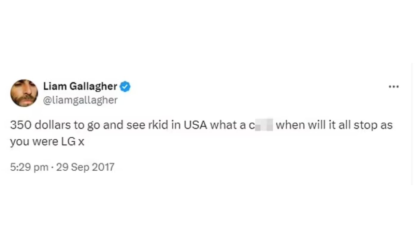Um antigo tweet de Liam Gallagher ressurgiu no Twitter após o anúncio de reunião do Oasis. Fãs resgataram tweet do músico criticando o irmão Noel por vender ingressos a US$ 350.