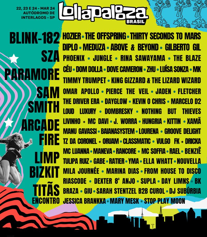 Chega de espera! O Lollapalooza Brasil acaba de divulgar o line-up da edição 2024 do festival. O shows acontecem nos dias 22, 23 e 24 de março, no já conhecido Autódromo de Interlagos, em São Paulo. Os headliners desta edição são Blink-182, SZA e Paramore.
