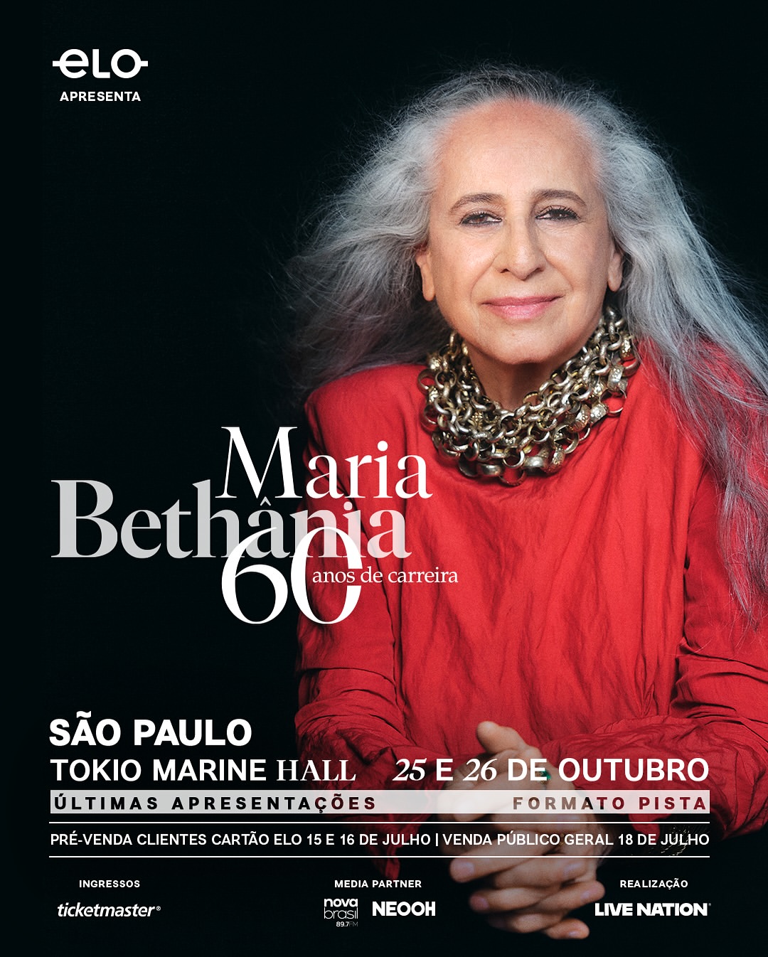 A turnê já passou com sucesso por Salvador, onde a cantora fez um show único, e pelo Rio de Janeiro, onde realizou quatro noites esgotadas. Agora, São Paulo receberá suas últimas apresentações da série que celebra seis décadas de uma das maiores vozes da música brasileira.