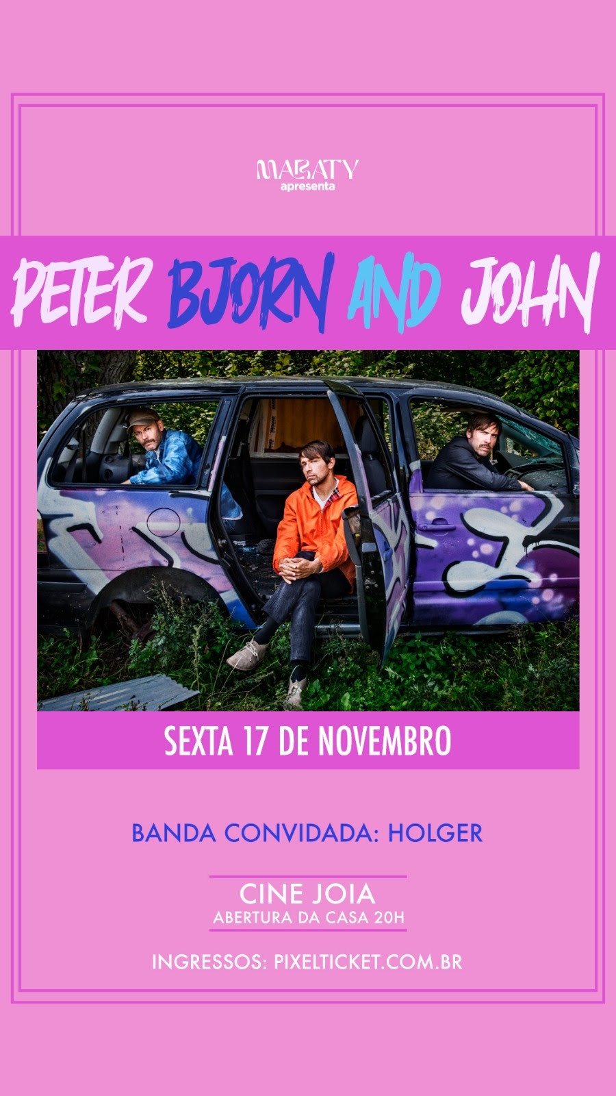 Venda on-line: https://pixelticket.com.br/eventos/16739/peter-bjorn-john-no-cine-joia