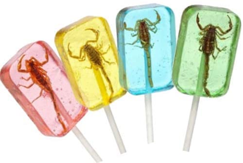 5. Pirulito de Escorpião: já imaginou provar um pirulito com um escorpião dentro? Com um sabor inigualável e marcante, você vai amar essa experiência. – https://amzn.to/3bw4Deu