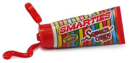 7. Smarties Squeeze Candy, Tart & Tangy Mix Fruits: que tal experimentar uma bala líquida dentro de um tubo de pasta de dente? Com sabor de cereja ice, ela garante um toque super refrescante.  – https://amzn.to/2xyy8xh