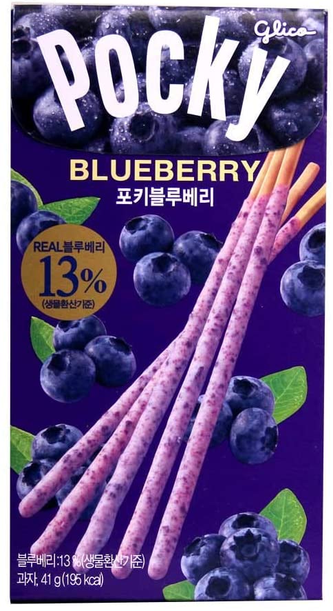 8. Glico Pocky Blueberry: esses deliciosos palitinhos de biscoitos possuem uma cobertura super cremosa de Blueberry. – https://amzn.to/3dyoawq