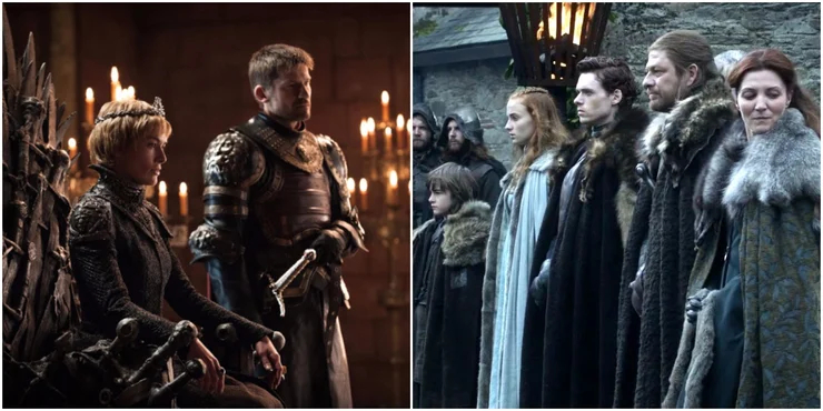 Duas famílias extremamente diferentes e quase destinadas ao conflito, os Stark e os Lannister foram inimigos a série inteira. Desde a decapitação de Ned Stark à vingança de Arya, no final foi formada uma aliança improvável entre as famílias, com Bran sentado no trono e Tyrion como Mão do Rei.