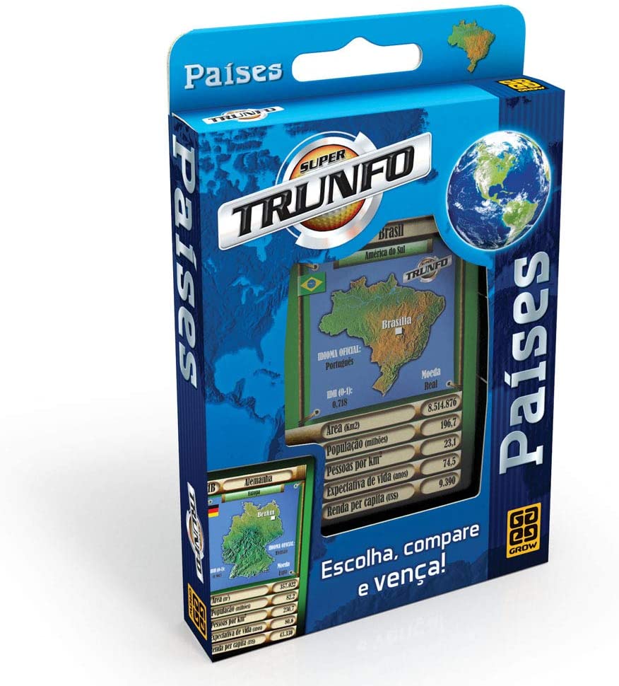 3. Trunfo Países Grow: com 32 cartas ilustradas com mapas, bandeiras e informações sobre cada país, com esse jogo você se diverte enquanto aprende. – https://amzn.to/3cCvBVB