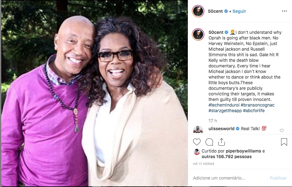 Ainda na legenda da publicação, o músico citou outros nomes de homens também acusados de assédio, mas que não foram relatados no documentário: “Não entendo por que Oprah só está perseguindo homens negros. Nada de Harvey Weinstein, nada de [Jeffrey] Epstein, apenas Michael Jackson e Russell Simmons, essa m***da é triste”, escreveu.