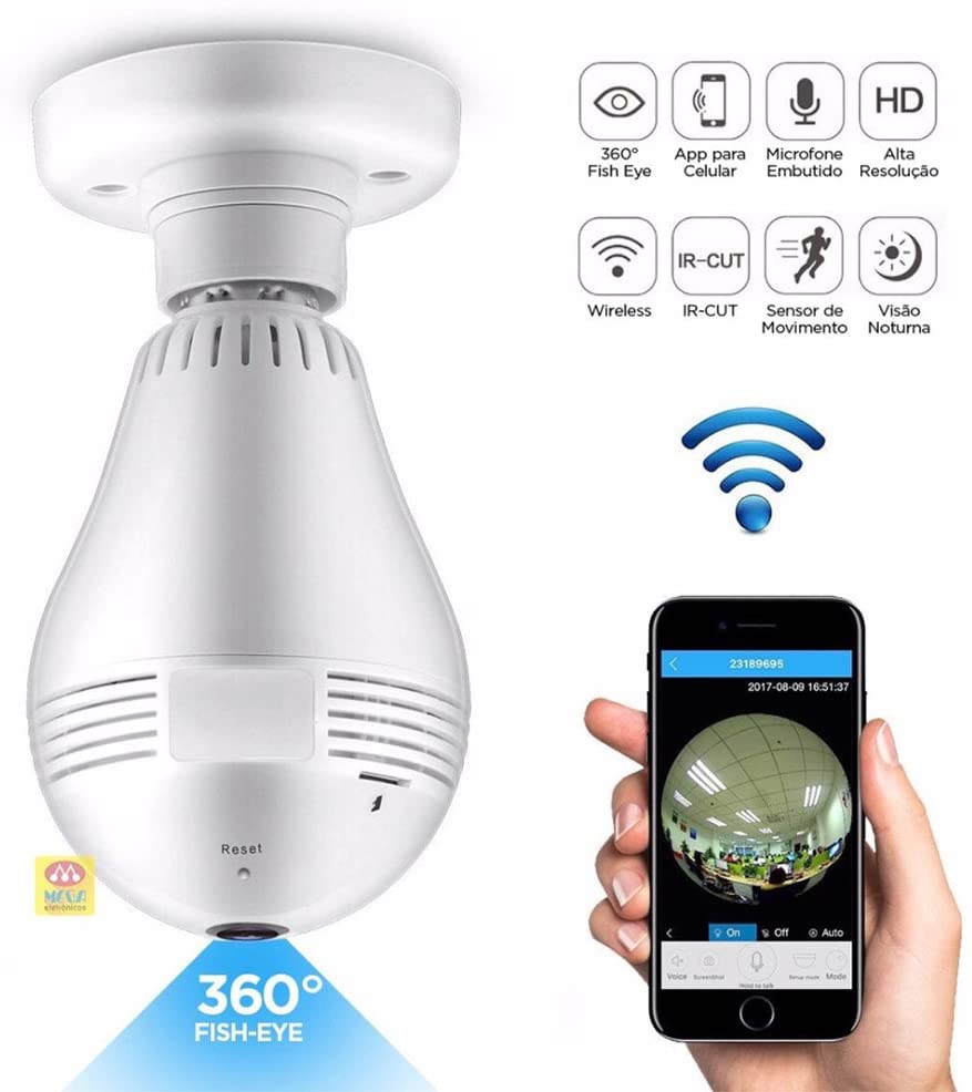 4. Câmera Lâmpada Espiã: super discreta, essa lâmpada possui uma câmera de alta definição e promete ajudar com a segurança da sua casa. – https://amzn.to/3heelWh