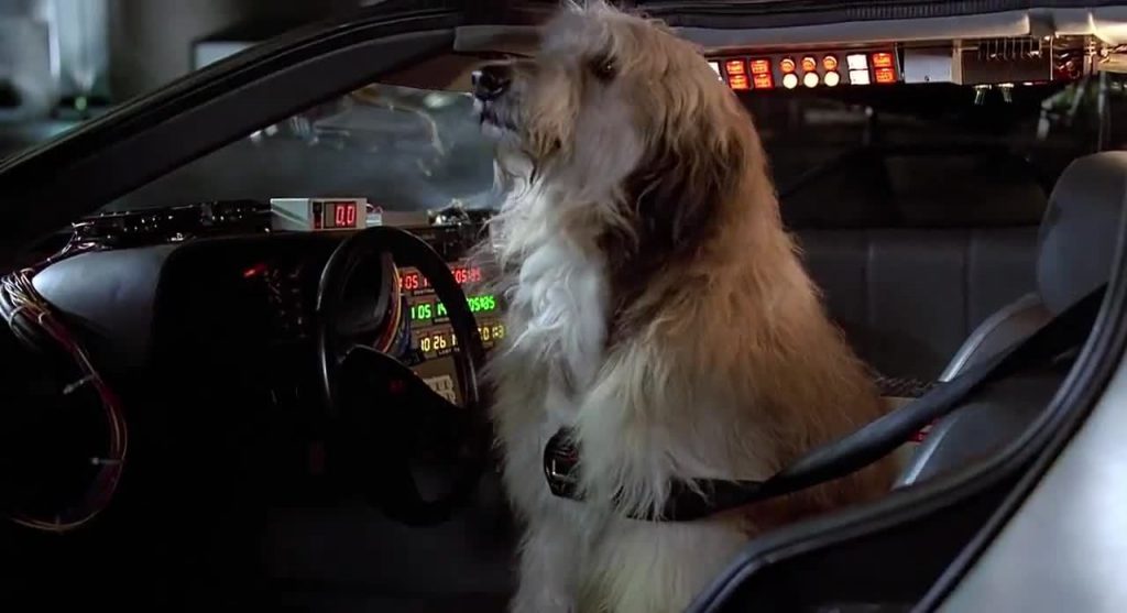Você se lembra que Doc Brown coloca um cachorro dentro do DeLorean para testar a viagem no tempo? Pois então, nas cenas à distância, trata-se de uma pessoa fantasiada de cachorro. Só vemos um cão de verdade quando a cena é filmada em close.