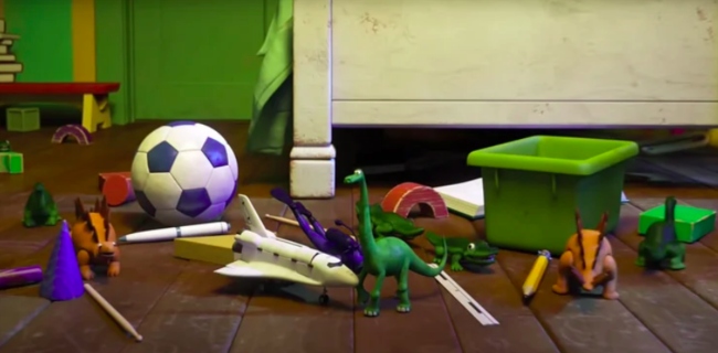 Universidade Monstros (2013) foi seguida por Divertida Mente (2015) e, depois, pelo Bom Dinossauro (2015), mas esse não era o plano original. O Bom Dinossauro seria lançado em 2014, antes de Divertida Mente, mas foi adiado para novembro de 2015. Por isso, Universidade Monstros anunciou O Bom Dinossauro na forma de brinquedo durante as finais do Jogo do Susto.