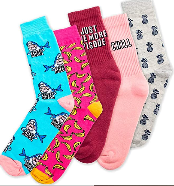 6. Kit de Meias Cano Alto: este kit vem com 5 meias de cano alto super divertidas e estilosas. – https://amzn.to/3haVuLb