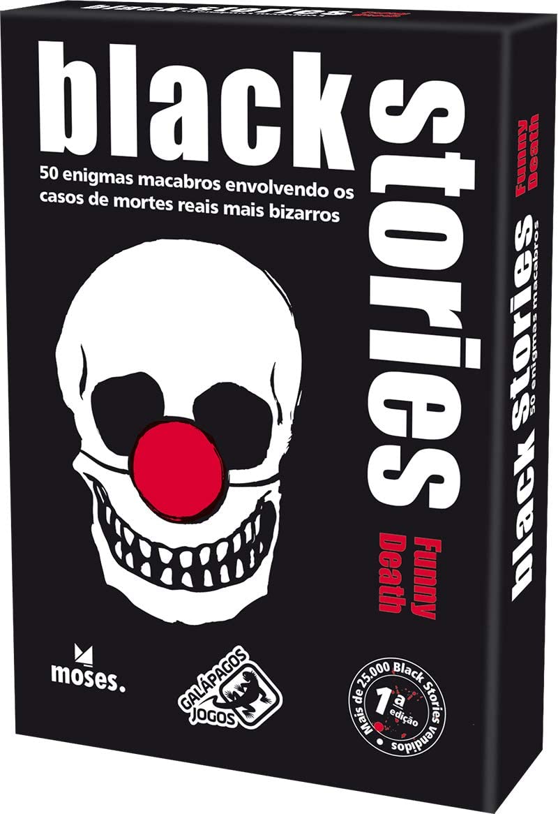 6. Black Stories Funny Death, Galápagos Jogos: este jogo traz 50 enigmas macabros envolvendo os casos de mortes reais mais bizarros do mundo. – https://amzn.to/2Lel1VS