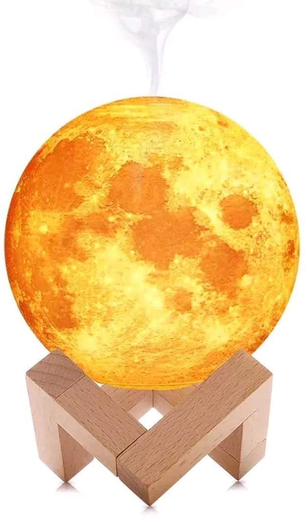 6. Luminária de mesa Lua Cheia: além de funcionar como uma linda luminária de mesa, este item também é umidificador de ar e difusor de aromas. – https://amzn.to/2XA1DID
