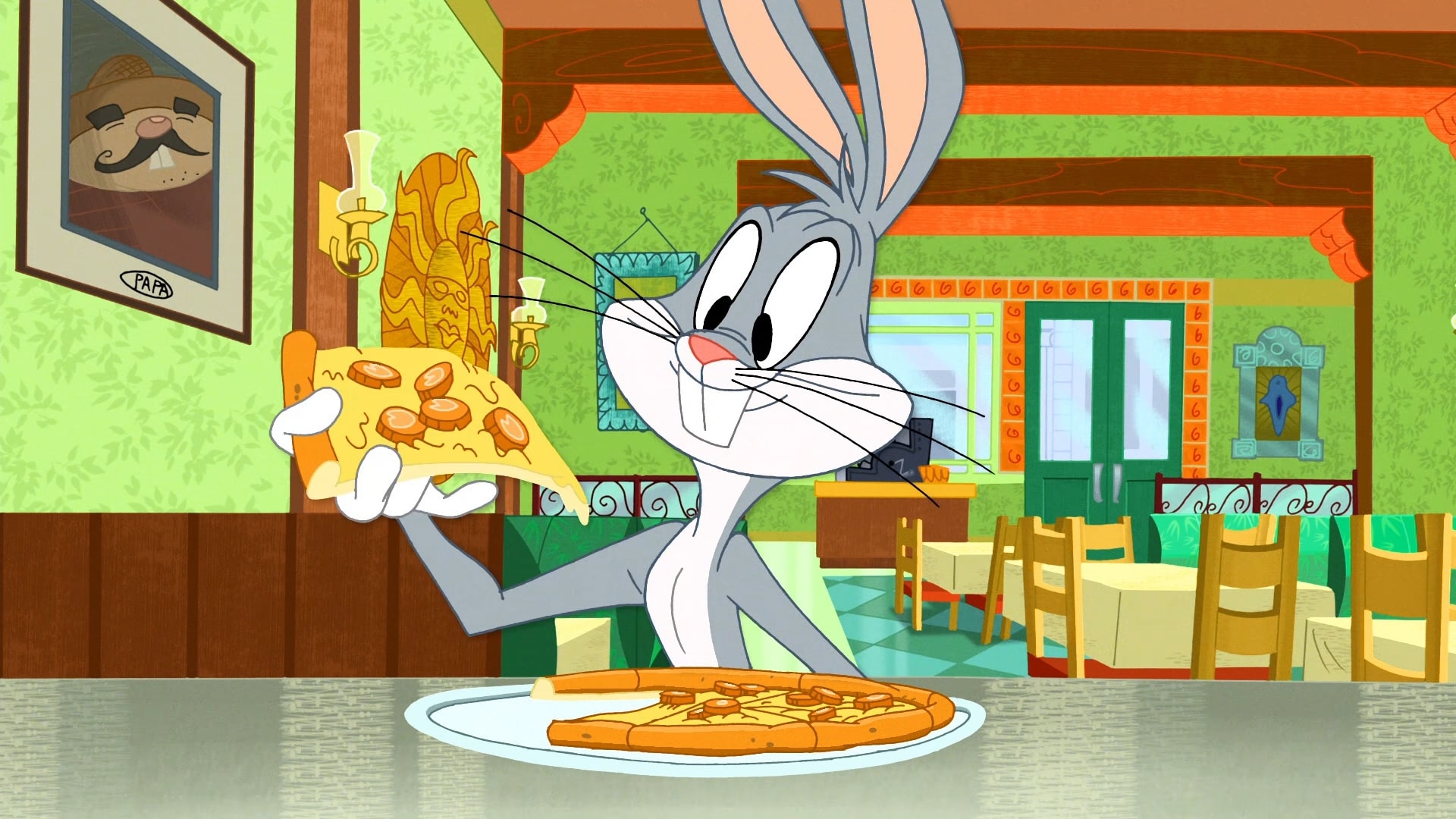 Além disso, Pernalonga decide provar uma novidade: pizza de cenoura do restaurante Pizzarriba, de Ligeirinho, que virou um ponto de encontro frequente dos Looney Tunes.