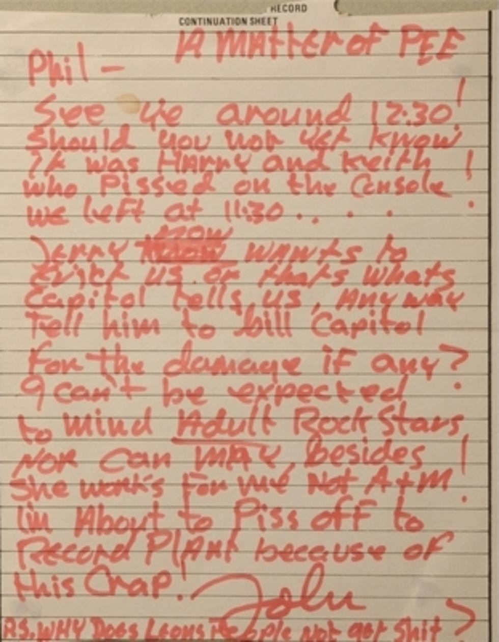 Nos anos 1970, John Lennon gravou com Keith Moon e Harry Nilsson, do The Who. O estúdio ficou deplorável, já que “alguém” fez xixi nos controles. Ameaçaram expulsá-lo do lugar.