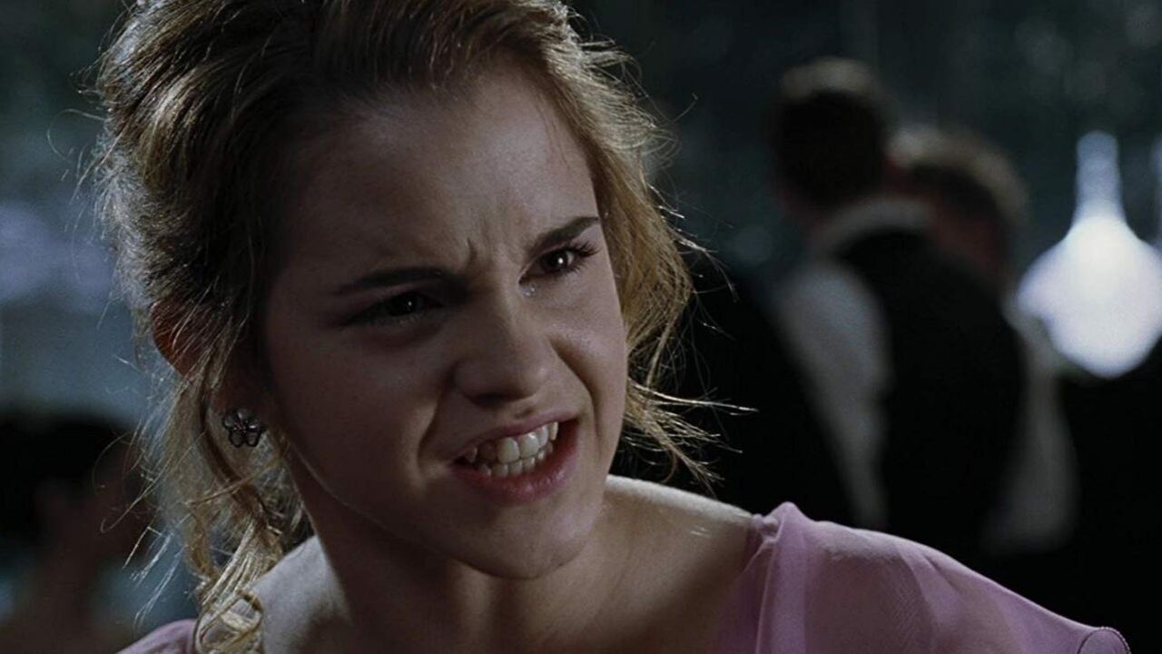 E é se mantendo fiel à personalidade dela que a bruxa é convidada pelo famoso jogador de quadribol, Viktor Krum. No baile, Hermione encanta todos com a beleza dela e confronta Rony ao ser menosprezada: “Da próxima vez que houver um baile, me convide antes que outro garoto faça isso, e não como último recurso!” Vale lembrar que três anos mais tarde, é ela quem toma a atitude de ir até Rony e fazer o primeiro beijo do casal acontecer.