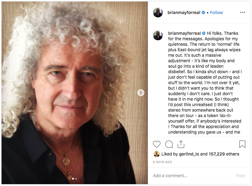 Recentemente, May compartilhou, no Instagram, uma mensagem de vídeo gravada para o anúncio de um álbum, que ainda não foi revelado.