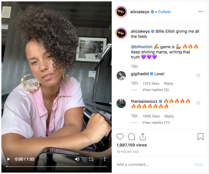TAGS: alicia keys, billie eilish, cover, Instagram, música, notícia