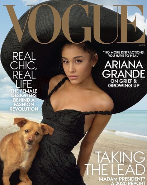 A cantora pop, Ariana Grande, foi capa da nova edição da revista Vogue e deu uma entrevista sobre o seu último disco Thank U, Next. No início do ano, ela foi a primeira artista a conquistar as três primeira posições na parada da Billboard com o novo projeto.