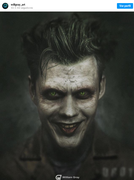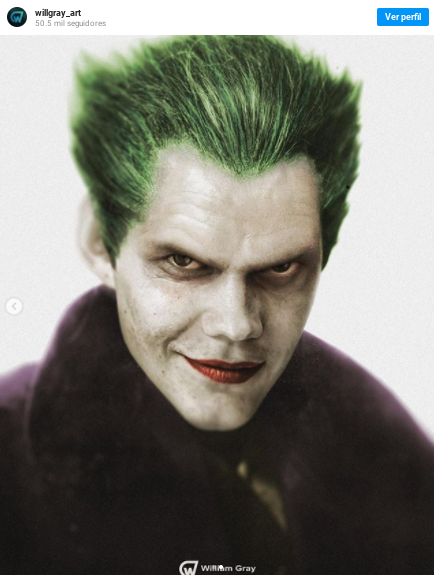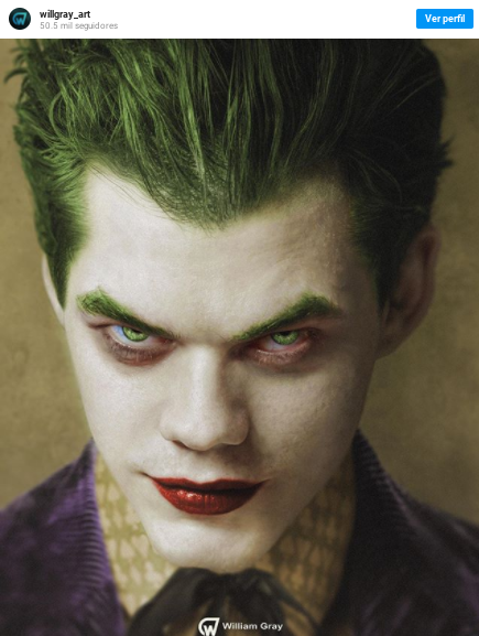O artista William Gray pensou em três visuais para o ator, todos baseados em momentos diferentes do vilão. O primeiro é inspirado em Batman: Arkham Origins. O antagonista foi pensado com o icônico cabelo verde, um sorriso vermelho menos exagerado e com uma aparência mais contida. Confira: