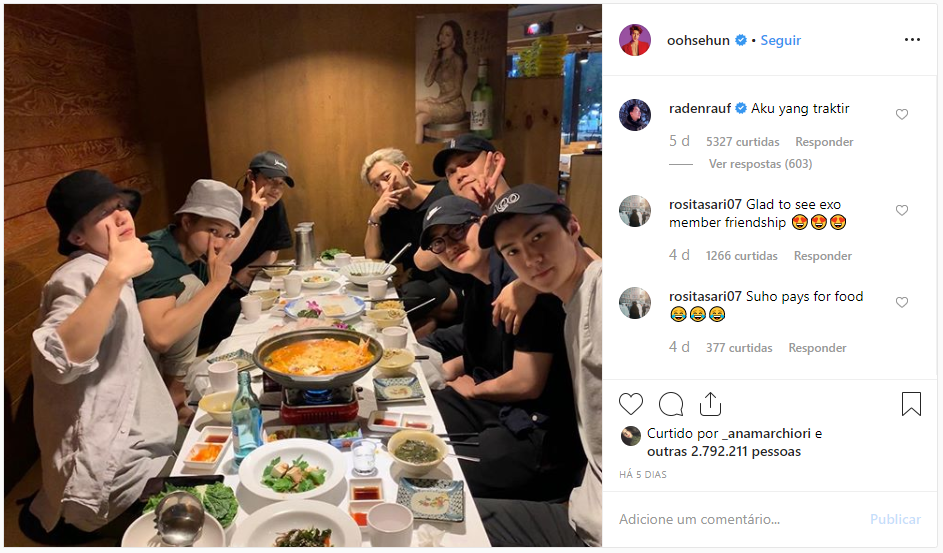 No início da semana, Sehun, também integrante do EXO, postou no Instagram uma foto de todos os garotos reunidos antes do alistamento de Kyung-soo. Veja abaixo: