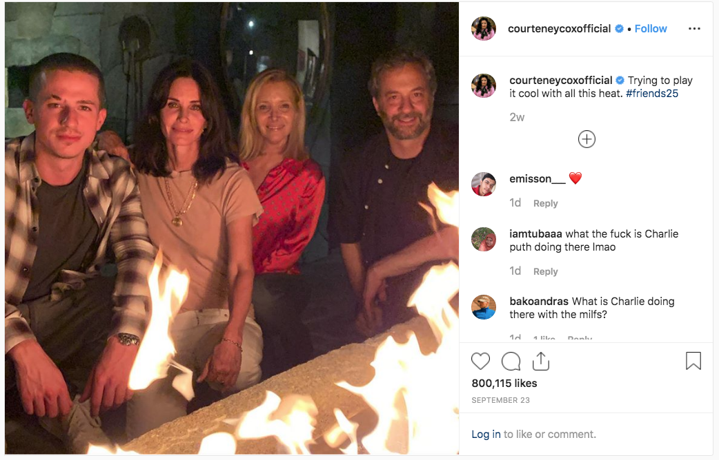No último domingo, 6, Courteney Cox compartilhou uma foto na qual ela aparece com parte do elenco de Friends.
