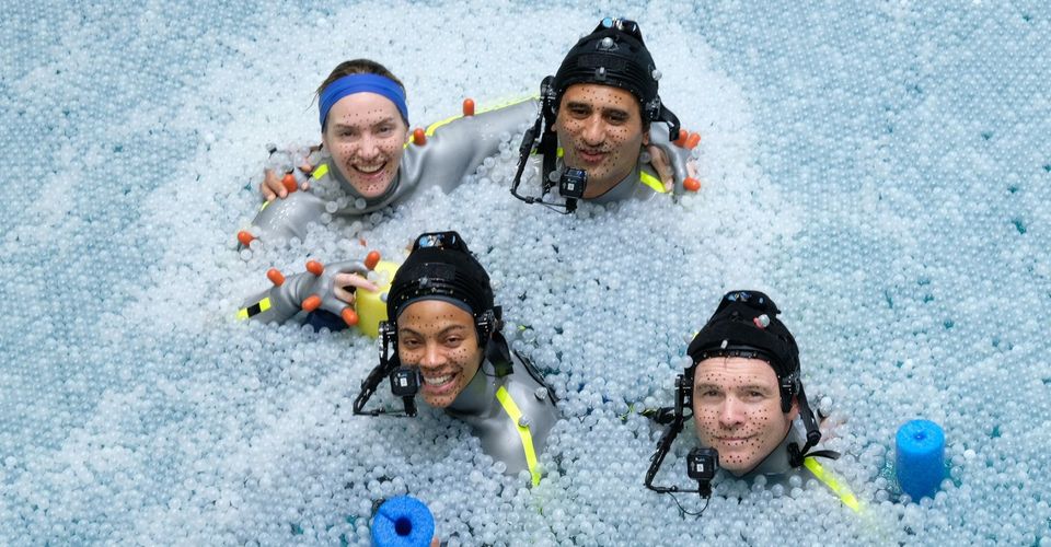 Essas mesmas fotos também dão dicas sobre como a tecnologia de capuz subaquático de Cameron funciona. Para impedir que as luzes do estúdio mexam com as sequências submersas de Avatar 2 durante as filmagens, a superfície dos tanques é coberta por bolas flutuantes. Ainda, os trajes mocap vêm com câmeras menores presas à cabeça para capturar as reações faciais.