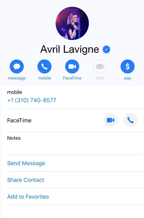 Não é possível saber se esse é o número pessoal dela ou se Avril separou algum telefone exclusivo para o público.
