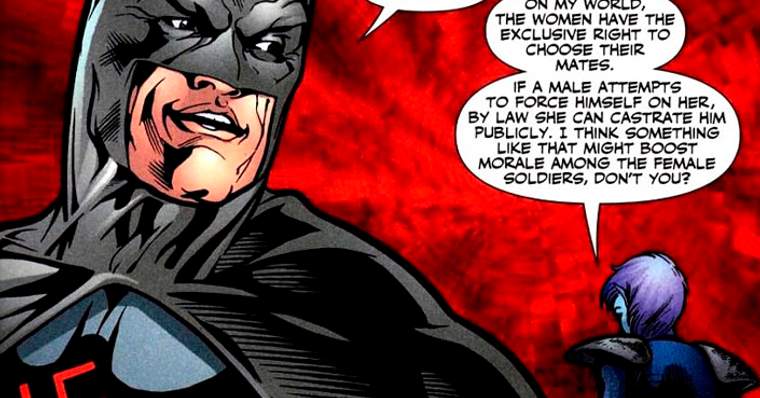 Esse Batman é fruto da famigerada pergunta “e se os nazistas tivessem vencido a Segunda Guerra?”. Nesse mundo, Adolf Hitler criou a Liga da Justiça do Eixo, ao invés da Liga da Justiça da América. Sim, se um Bat-Nazista já parece ruim, imagine uma super equipe inteira defendendo os interesses do Fuhrer.