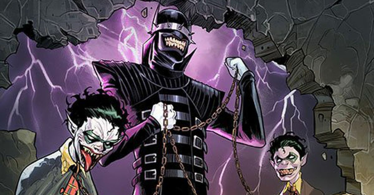 Uma das versões mais assustadoras do Batman é a sua “fusão” com o Coringa introduzida na HQ de Scott Snyder Noites de Trevas – Metal, chamada de O Batman Que Ri. Basicamente, vários Batmans malignos se unem para destruir o multiverso, e um deles é um Morcego que sucumbiu a loucura do Coringa no melhor estilo A Piada Mortal.