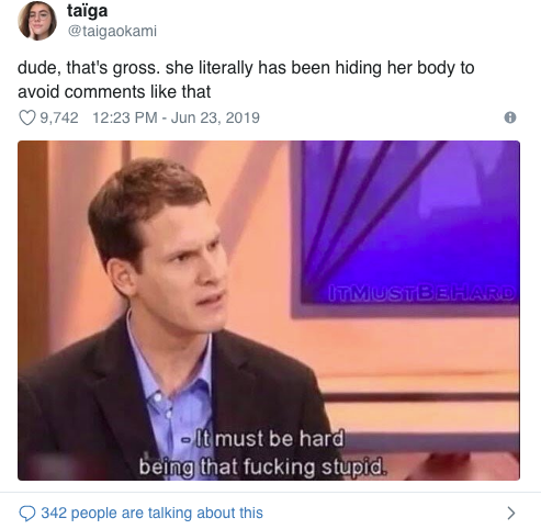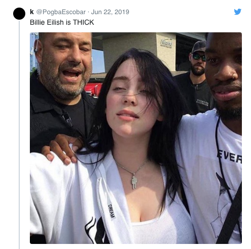 No entanto, no último final de semana, a artista de 17 anos foi vítima de comentários em que seu corpo era objetificado depois de um fã ter postado uma foto em que ela aparece, pela primeira vez, de regata. Depois que o tweet viralizou, várias usários da rede se manifestaram e criticaram as atitudes de quem havia falado sobre o corpo de Eilish.