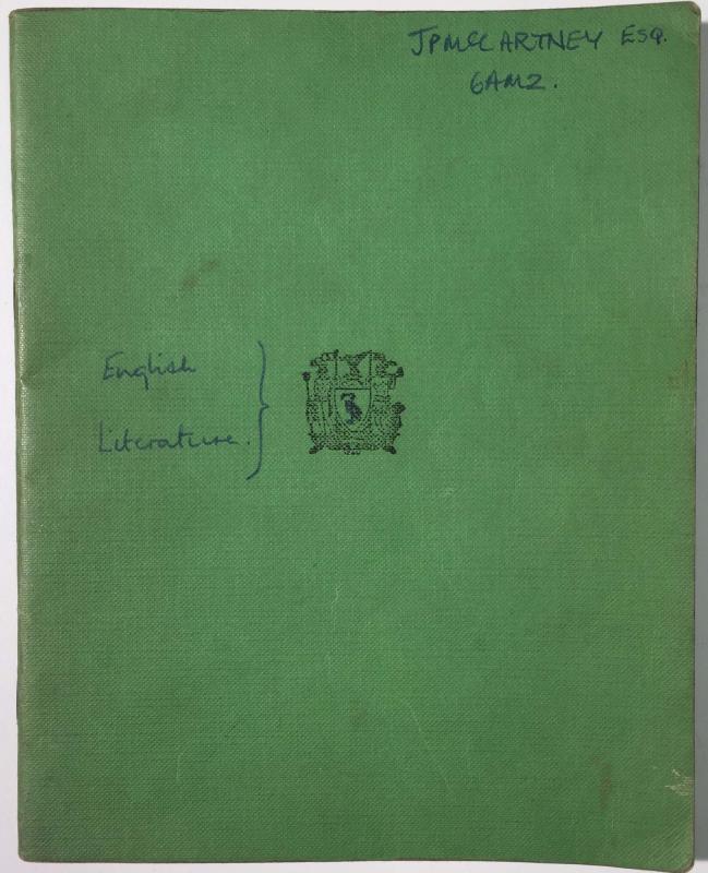 Caderno de literatura que Paul McCartney usou na escola será leiloado