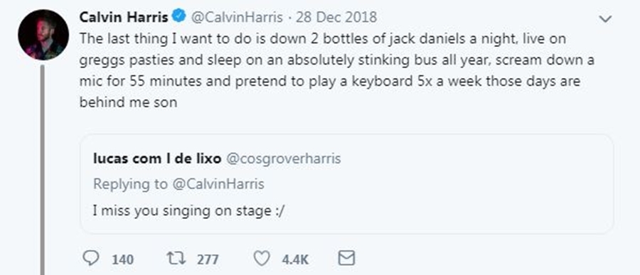 Em novembro do ano passado, Harris disse que a música eletrônica dos últimos anos não soa como a que ele gosta de fazer.