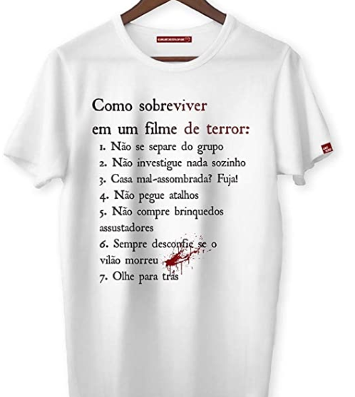 9. Camiseta Babylook, Como Sobreviver a um Filme de Terror: https://amzn.to/3cSXZA1