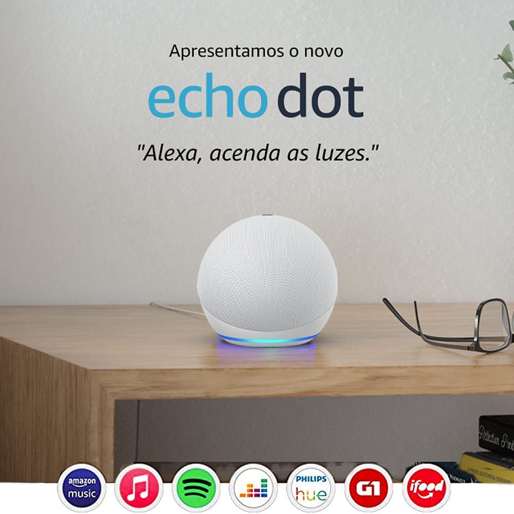 4. Novo Echo Dot (4ª Geração) – Smart Speaker com Alexa: com o Echo Dot você pode pedir para a Alexa responder perguntas, criar alarmes, ler as notícias, ligar para amigos, tocas suas músicas favoritas, controlar dispositivos de casa inteligente e muuito mais. – https://amzn.to/386USne