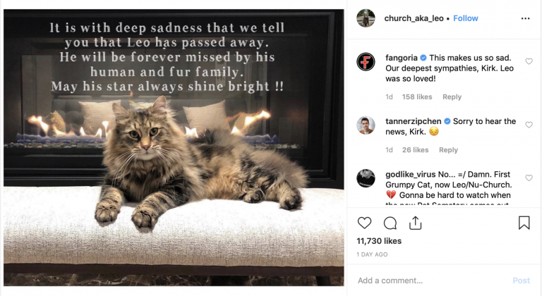 O público ficou sabendo por meio de um post no Instagram feito pelo dono do felino, Kirk Jarret. “É com profunda tristeza que contamos que Leo morreu. Ele deixará muitas saudades. Que a estrela dele sempre brilhe”, escreveu.