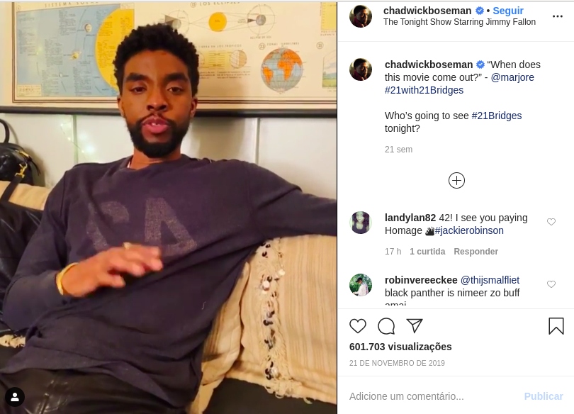 No entanto, o público se concentrou mais no emagrecimento de Boseman do que na mensagem em si. “Espero que você esteja bem, sua aparência está diferente”, escreveu um usuário.