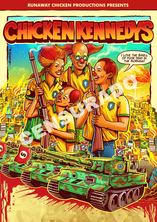 7) Para aqueles que, como a gente, ficaram bastante decepcionados com tudo o que aconteceu de uma semana para cá, estamos com uma versão da camiseta chamada “CHICKEN KENNEDYS”. Atenção: “Chicken Kennedys” não possui relação alguma com nenhuma banda que você conhece e não infringe nenhum direito autoral ou propriedade intelectual. Se você está fazendo associação com alguma banda, isto é coisa da sua cabeça.