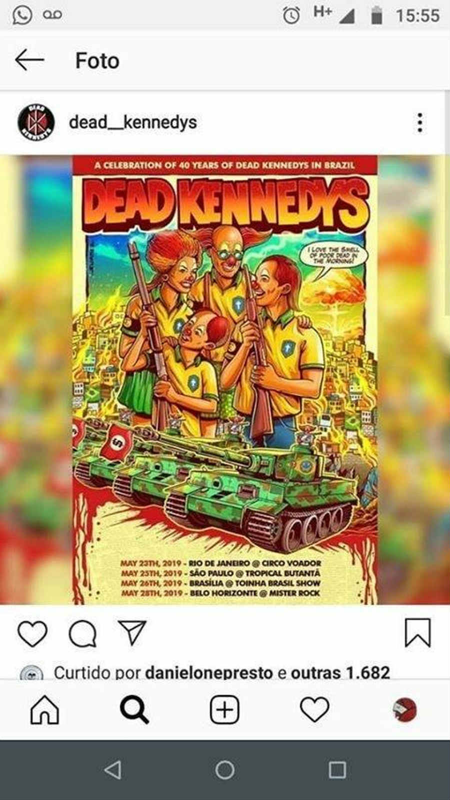 2) O Instagram oficial do Dead Kennedys compartilhou o poster. Print também abaixo. Foi o compartilhamento pela página da banda que levou à viralização da imagem.