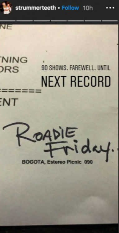 Davey Latter, um dos integrantes da equipe dos bastidores dos shows que acompanha a banda, publicou uma foto no Instagram em que dá indícios de que eles não se apresentarão mais “até o próximo disco”. (crédito: reprodução)