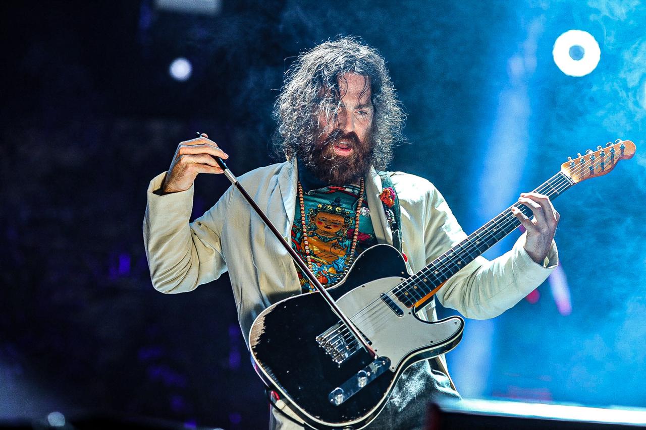 O rosto do músico australiano não refletia nem de perto a energia elevada do som que levou ao Palco Norte na Esplanada do Mineirão, nem mesmo no momento memorável em que apresentou uma interpretação catártica de “Message You at Midnight“, na qual usou um arco de violino para tocar guitarra.