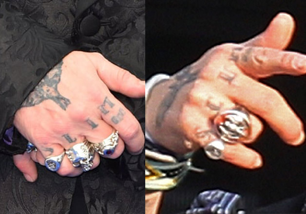 A tatuagem nos dedos, com o apelido, foi modificada após o divórcio, em 2016, e as letras foram alteradas, de forma ofensiva, para a palavra “Scum”, ou “escória”, em português. O desenho de Amber, no braço, foi coberto com uma paisagem inspirada em Piratas do Caribe, franquia na qual Depp interpretou Jack Sparrow.