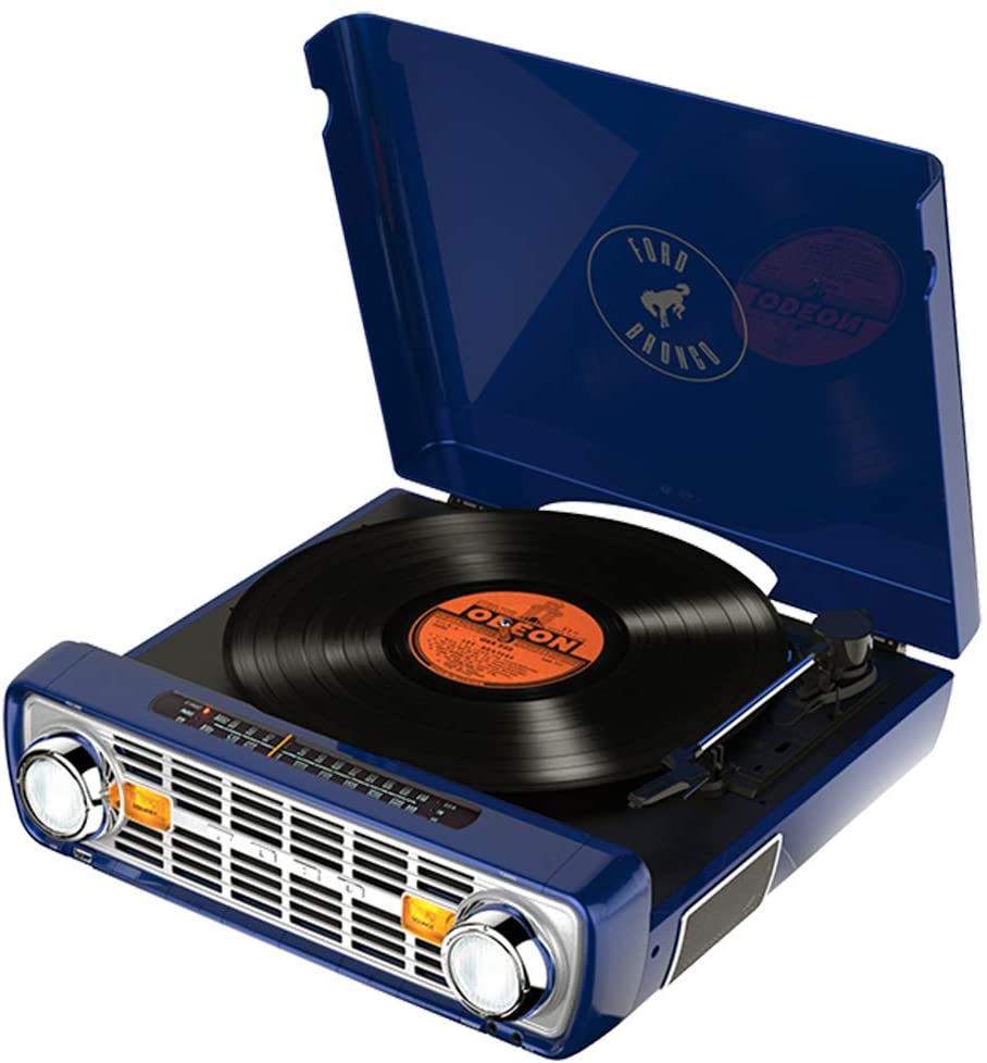 7. Toca-discos vinil Bronco LP ION com rádio, USB, entrada auxiliar e conversão digital: com design vintage do modelo bronco da Ford, esse toca-disco é a escolha ideal para dar um toque a mais na decoração e, ao mesmo tempo, se divertir como nos velhos tempos. – https://amzn.to/3gsw2Sy
