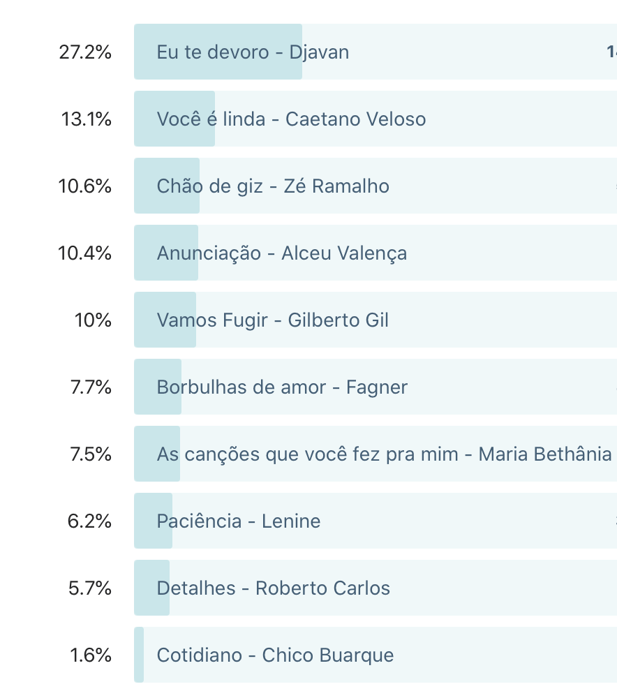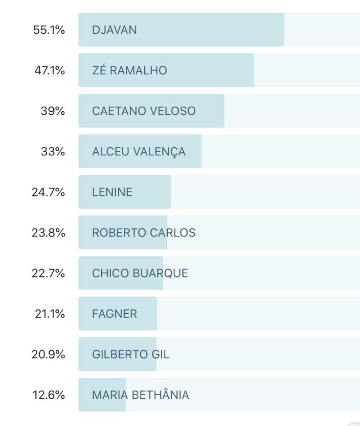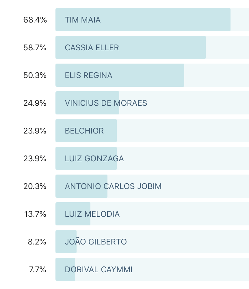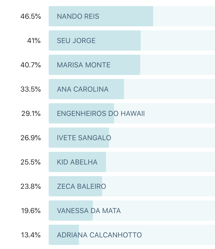 A seleção apontou os favoritos em cinco categorias: artistas vivos, artistas que já morreram, grupos a partir dos anos 1980, os novíssimos nomes da música brasileira, e as faixas brasileiras com “poder para conquistar o crush.